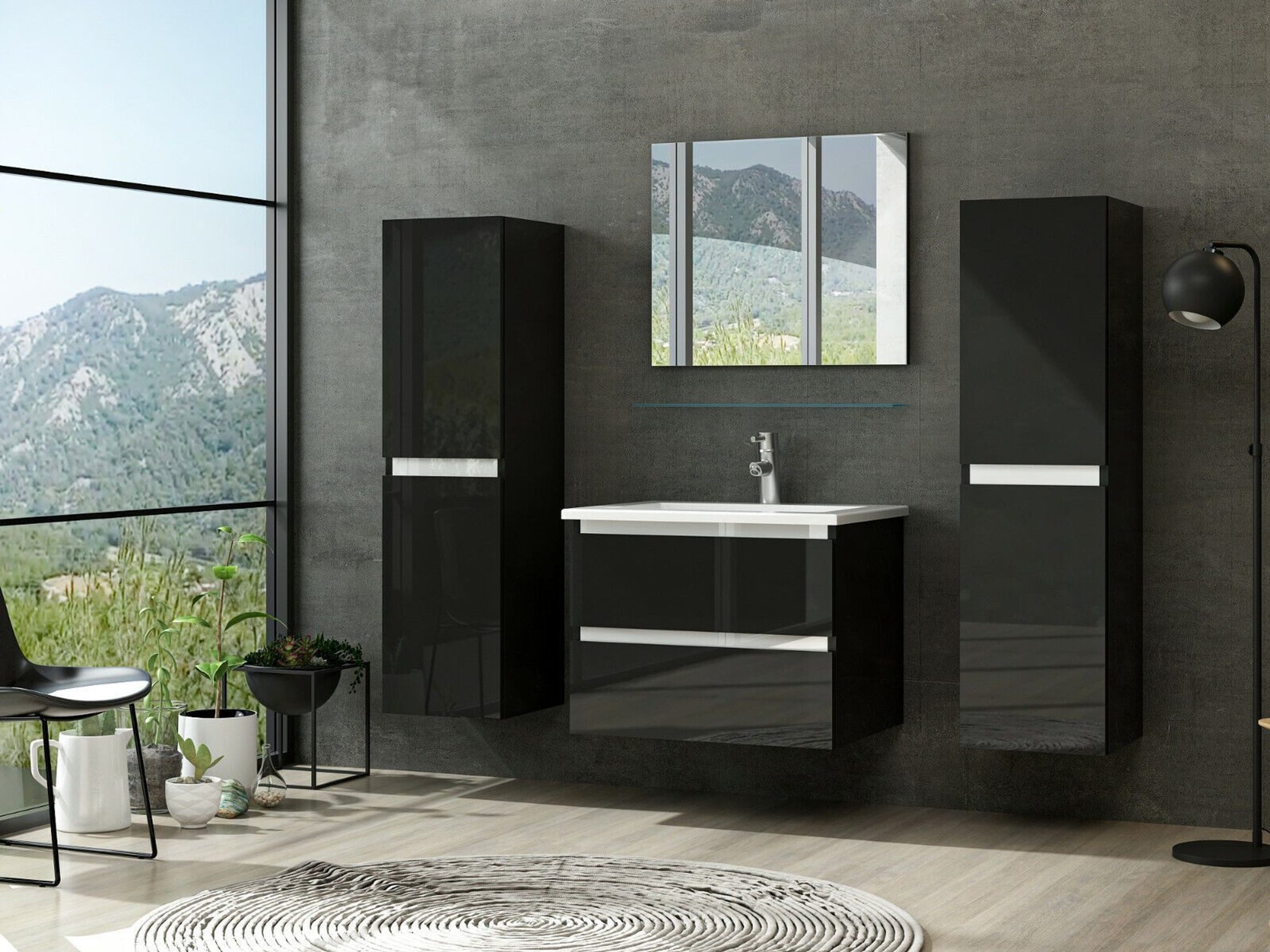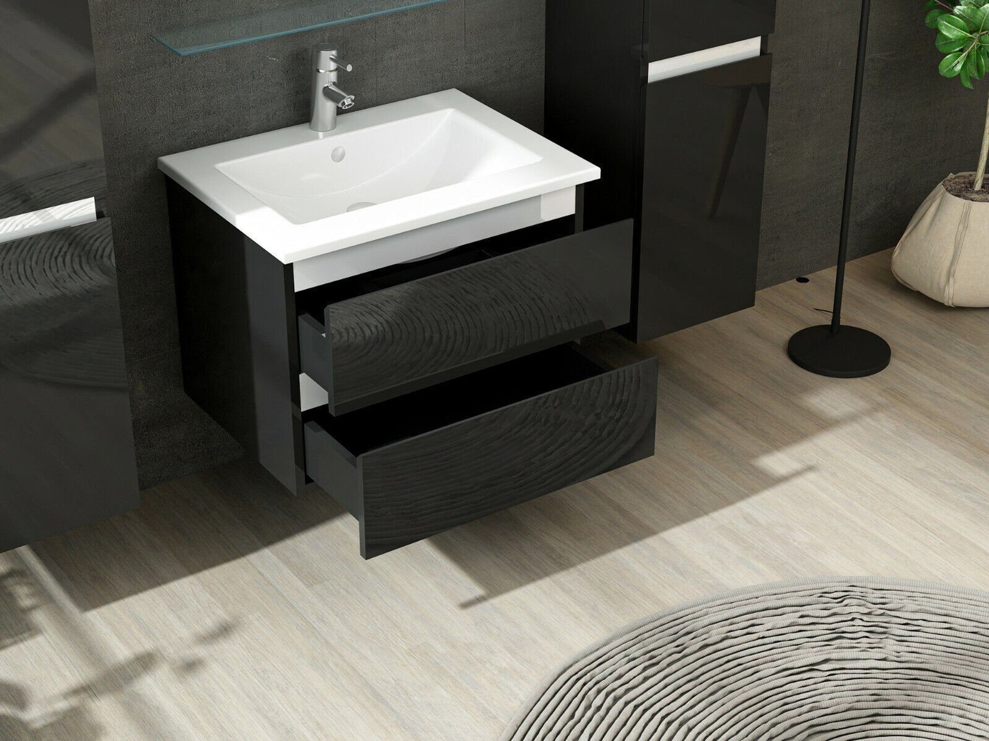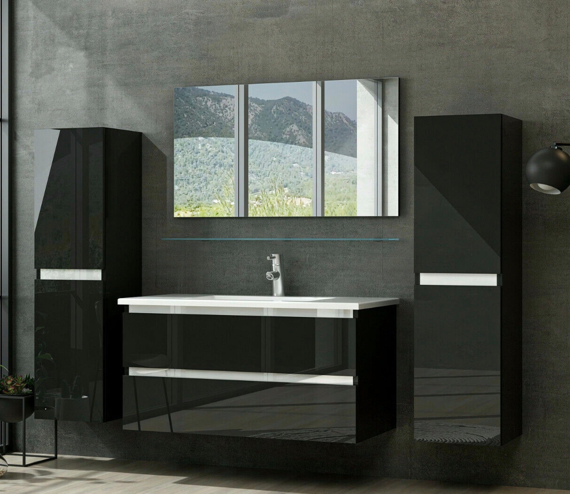 Badmöbel Set Kairo 6-teilig (60 cm) – Schwarz, inkl. Keramik-Waschbecken