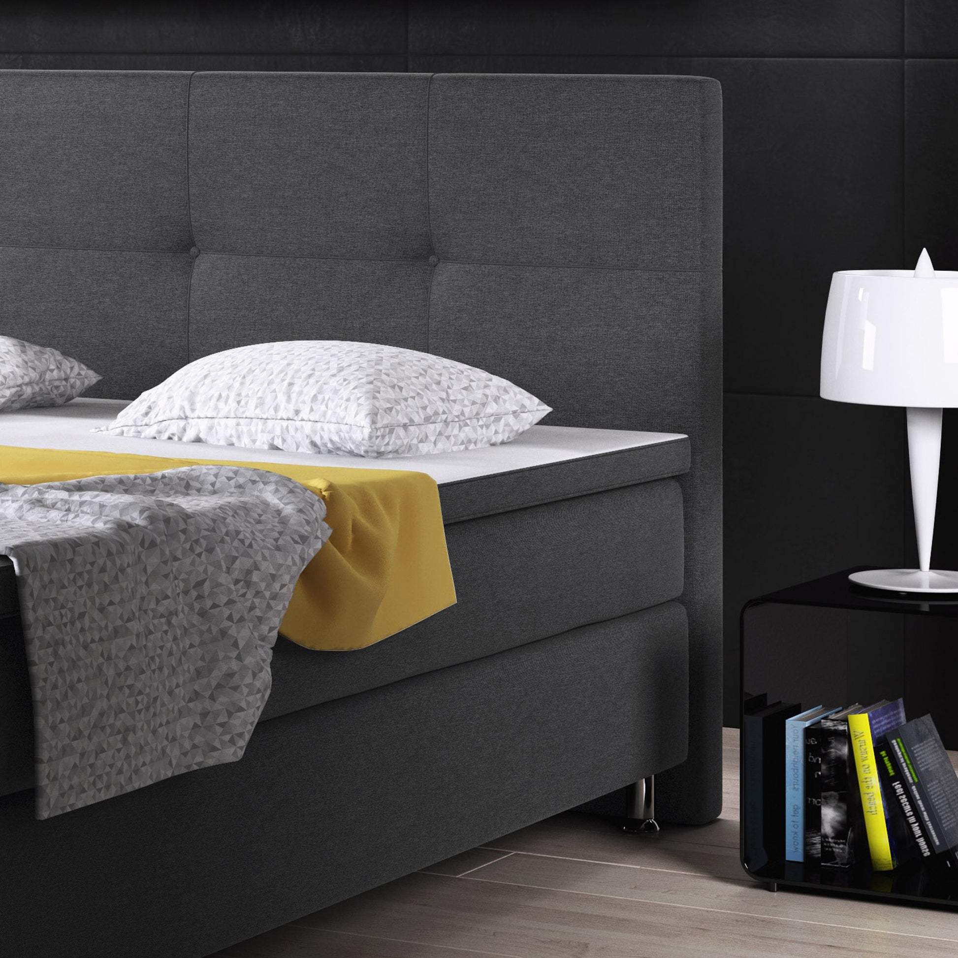 Boxspringbett Dallas 180×200 Webstoff Anthrazit – PU‑Topper