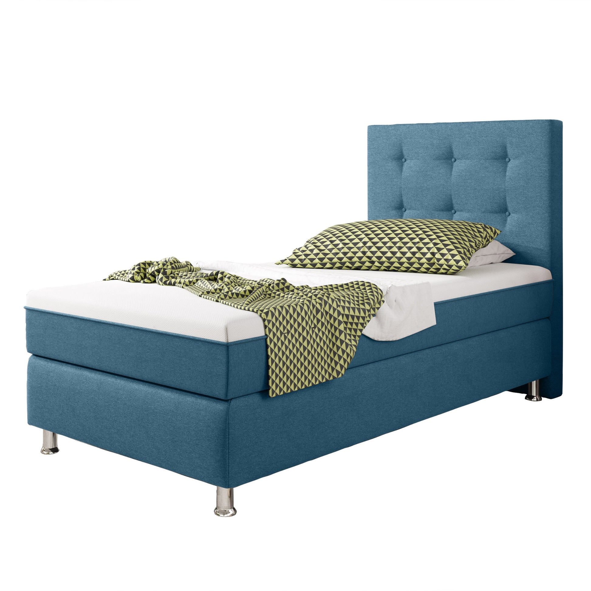 Boxspringbett Köln Plus 90x200 cm Webstoff Blau mit Topper-Optik