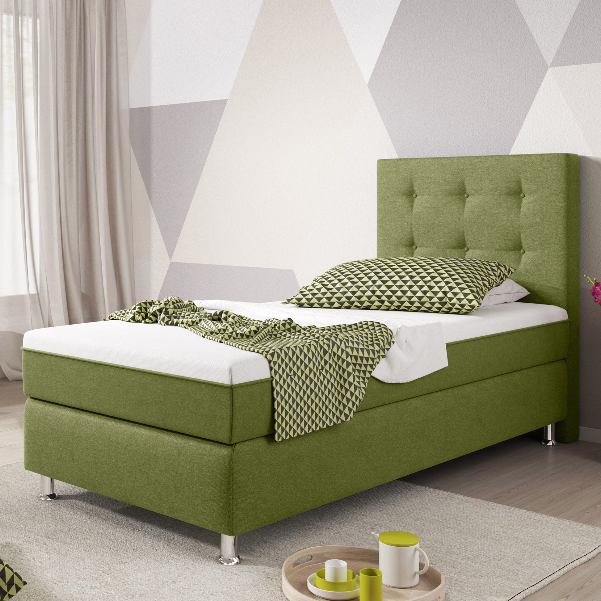 Boxspringbett Köln Plus 90x200 cm Webstoff Grün mit Topper-Optik