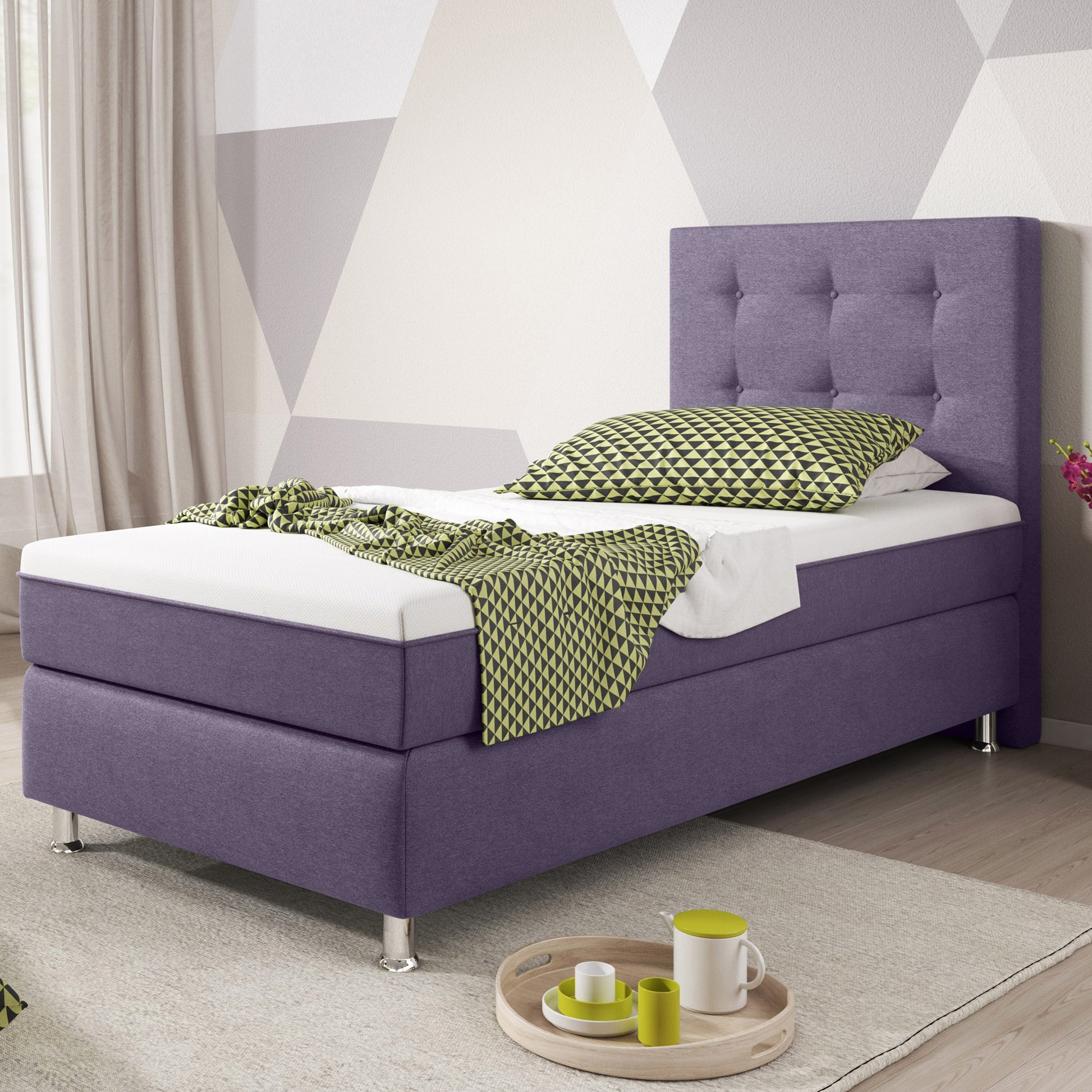 Boxspringbett Köln Plus 90x200 cm Webstoff Lila mit Topper-Optik