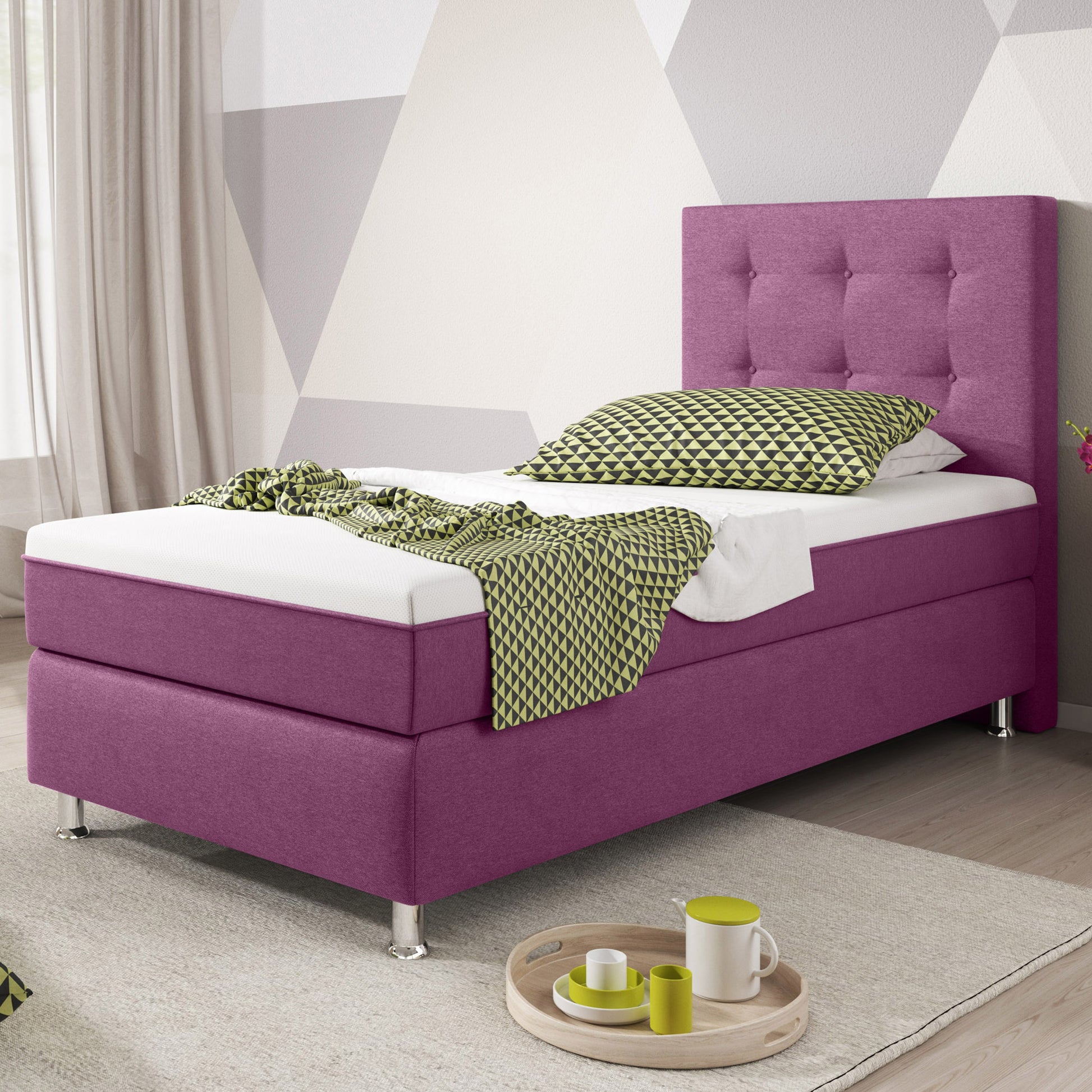 Boxspringbett Köln Plus 90x200 cm Webstoff Pink mit Topper-Optik
