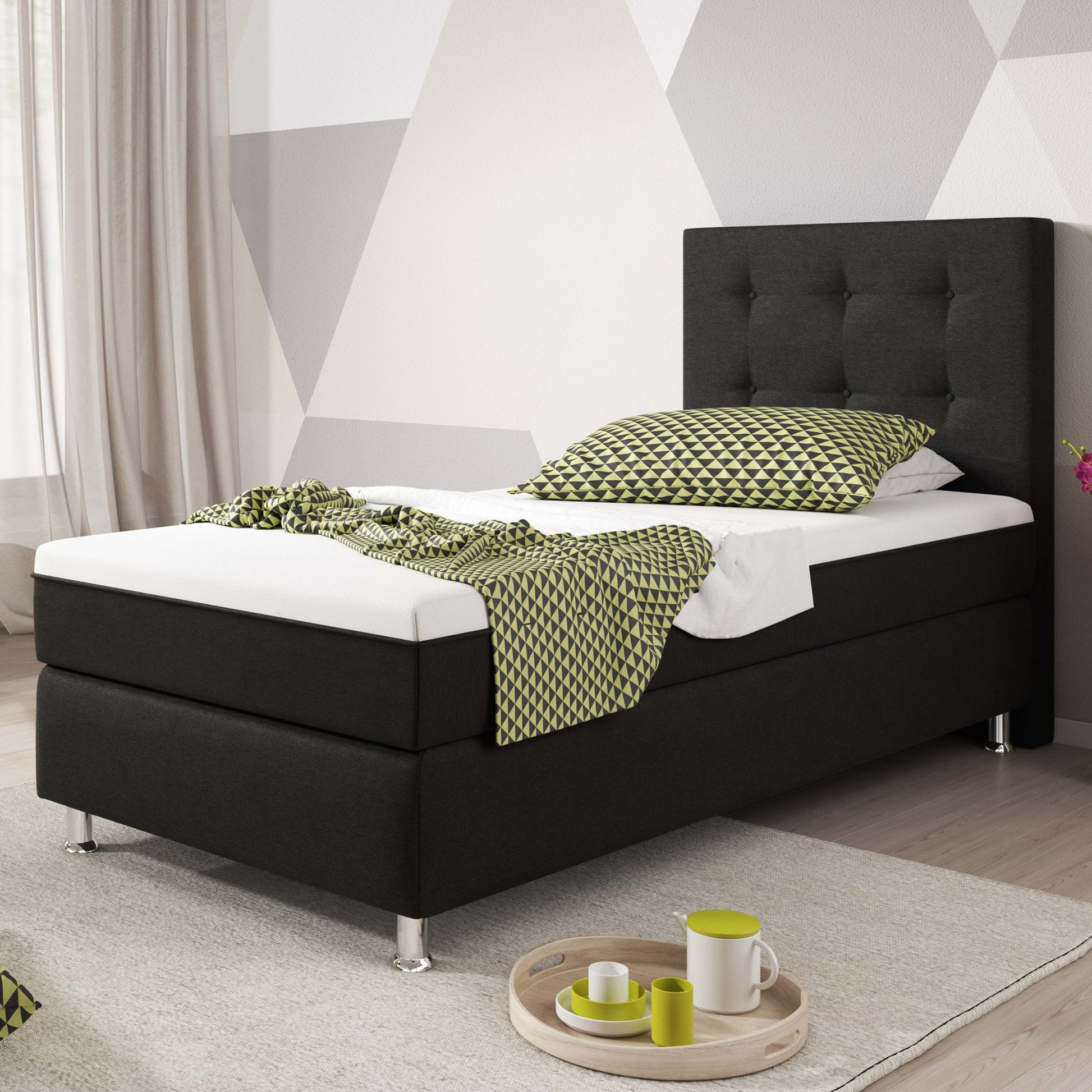 Boxspringbett Köln Plus 90x200 cm Webstoff Schwarz mit Topper-Optik